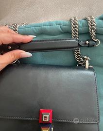 Borsa Fendi in pelle nera perfetta con catena e due scompartimenti verificata, molto capiente, elegante. Metalleria color argento