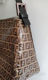 Borsa a spalla Fendi Mamma in tessuto crystal jacquard FF marrone testa di moro e con finiture testa di moro e hardware color argento.
