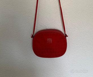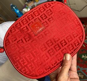 Tracollina Fendi FF in pelle e tela, vintage anni 80, altezza cm 17, larghezza cm 21, profondità cm 4. Un amore!