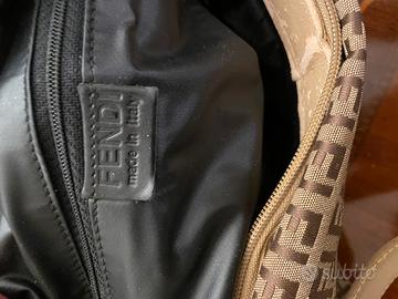 Vendo borsa Fendi in tessuto e manici in pelle originale. Come potete vedere dalla foto il tessuto è in perfetto stato così come l’interno della borsa, soltanto l’interno pelle della tracolla e della chiusura lampo è un po’ rovinata. (Piccolo intervento del pellettiere e la borsa è come nuova)