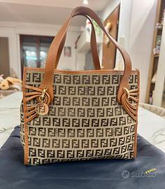 Vendo bellissima Fendi Zucchino Canvas Tote Bag, con iconico motivo monogramma FF su tela con finiture in pelle color cammello a contrasto. Tenuta in ottime condizioni fornita con la sua apposita dustbag.