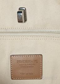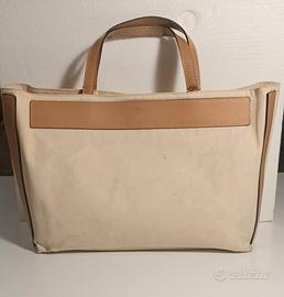Vintage, in tela, con strisce in pelle sui fianchi e sul fondo.