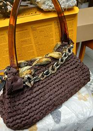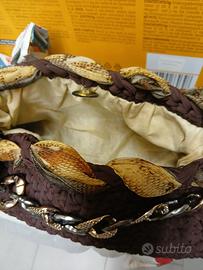 Borsa in fettuccia fatta a mano fondo cuoio ,foderata