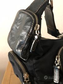 Tracolla nera di Francesco Biasia in tessuto e pelle nera.