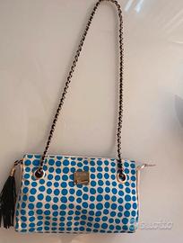 Borsa a mano o tracolla in cotone color burro stampato pois color turchese.