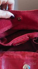 Vendo splendida borsa a mano Furla originale in morbida vera pelle color rosso amarena/bordeaux. Dettagli: Hardware dorato con logo Furla inciso sul pendente circolare e logo impresso frontalmente sulla pelle. Interno: Fodera in tessuto logato tono su tono. Dispone di un ampio scomparto centrale con zip, tasche interne portaoggetti e chiusure magnetiche laterali per una maggiore sicurezza. Dimensioni: Media/Grande (molto spaziosa). Dotata di piedini protettivi in metallo sulla base. Condizioni: