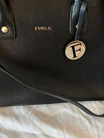 Borsa originale Furla nera con tracolla rimovibile, ha i manici per essere portata anche a mano. Acquistata in un negozio Furla a Bologna (è presente lo scontrino). Ottime condizioni è stata usata al massimo un paio di volte. Misure in foto, completa di dust bag.