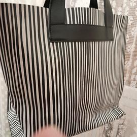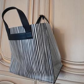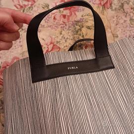 Borsa a mano Furla,a righe nere su fondo bianco (un lato a righe sottili e l'altro a righe più grosse), usata solo un paio di volte e come nuova. Misura cm 30 di larghezza e cm.28 di altezza, manici esclusi.