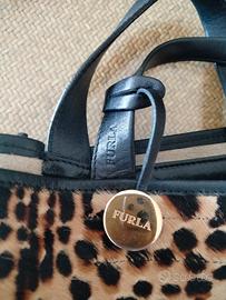Bellissima borsa Furla originale, con stampa a pois che ricorda la pelliccia di leopardo.