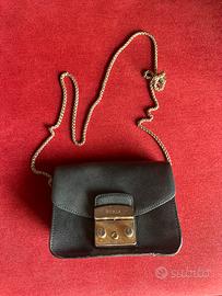 Borsa a tracolla metropolis in pelle ) Vendo una piccola borsa Furla originale, 17/12 cm, bellissima tracolla lunga, le parti metalliche mostrano segni di usura,