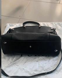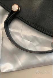 Borsa shopper mod. Piper nera in pelle con tracolla amovibile, misure h 37 x l 29 x p 14 cm Due tasche interne e apertura esterna con cerniera. Lievi segni di usura sul bordo del manico e come da foto e i ganci per la tracolla un po scoloriti. Custodia originale.