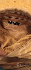 borsa Furla da donna, tessuto chiaro con stampa Furla,in buone condizioni,presenti due macchie sul fondo interno visibili in foto ,no confezione originale