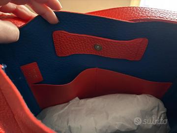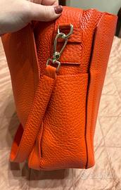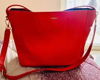 Borsa originale Furla in vera pelle, color rosso corallo. Tasche laterali esterne e tasche interne. Prezzo di acquisto 359€. Misure: Base 35 cm Altezza 30 cm Possibilità di portarla a spalla e a tracolla