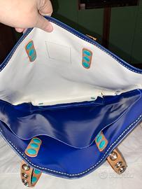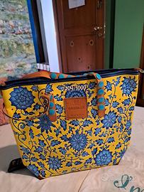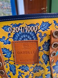 nea Gabsille. Modello 0204/1000, nuova senza cartellino, ma con suo involucro di protezione. PVC, fantasia floreale, sfondo giallo con fiori blu, manici e rinforzi in cuio, manici decorati con classiche borchie Gabs turchesi. Logo Gabsille in cuio su fronte. La borsa può essere modulabile acquistando tracolla, scomparti interni in cotone di varie fantasie e piccoli accessori. Prettamente adatta all'estate. Misure: profondità piatta, altezza 31 cm, larghezza 35 cm, manici 60 cm da parte a parte. Prezzo non trattabile, quindi NON RISPONDERÒ A RICHIESTE DI RIBASSO. Da fine novembre a maggio non riesiederó nella casa e nel posto dove si trovano gli articoli nella mia vetrina, per cui non potrò fornire altre foto o misure, per altro, sempre a disposizione.