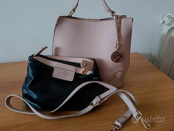 Borsa Gattinoni colore rosa antico provvista di pochette nera interna (quella che compare nella foto) e tracolla