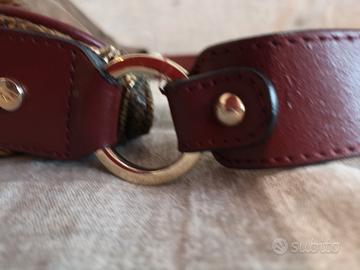 Bellissima. Borsa Gattinoni color bronzo cangiante ft B74D23003990006 con stampe Gattinoni. Cinghie tu bordoux e anelli color oro. Tre tasche interne..Interno color nero Cerniera interna abbellita con 'ciliege'. MAI USATA