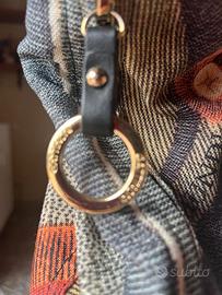 Borsa Gattinoni in classica stampa Planetarium, anelli metallici e cerniere colore oro, esterno 80% nylon e 20% poliuretano; Fodera in nero con marchio in poliestere, manici in tessuto logato largo di colore nero; riporti superiori, base inferiore e base manici in pelle. Tasche interne: 1 con zip e 2 aperte; tasche laterali con cerniera in entrambi i lati.