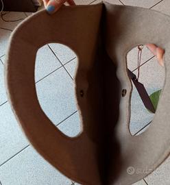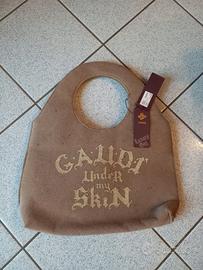 borsa 100% WO particolare, rigida color tortora con alcune macchie più scure ancora prezzata mai usata. dimensione: larghezza 45cm, h 29cm fino al cerchio del manico.cm 53 totale compresivi del cerchio. chiusura con clips.