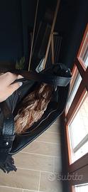 Borsa/bag di Genuine Leather, nuova mai usata, in scamosciato e vera pelle. Colore nero , con frange di 20cm. Tracolla regolabile in pelle.