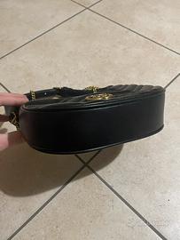 Compatta ma capiente, perfetta sia di giorno che per la sera. Tracolla con catena dorata super chic.