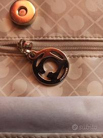 Shopper beige con motivo classico Gherardini (logo ripetuto su tutta la superficie), in tessuto sintetico leggero e resistente, tipico del brand.