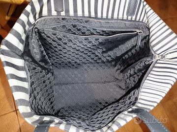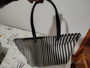 Borsa shopper elegante GHERARDINI modello "Tan", collezione esclusiva in tela a righe bianche e nere.