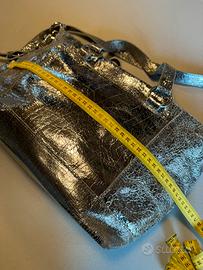 Borsa in pelle Argento invecchiato in ottime condizioni spalle mano e tracolla Misure in foto