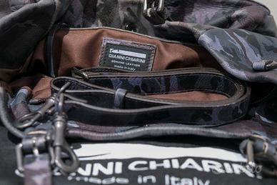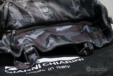 Borsa marca Gianni Chiarini Firenze in ottimo stato colore camouflage Realizzata in pelle martellata e caratterizzata da forme morbide . E' presente anche la pratica tracolla e la sua custodia