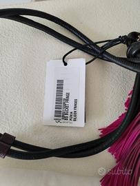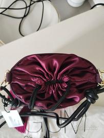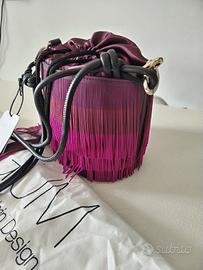 Borsa Gianni Chiarini linea GUM modello bucket / secchiello con frange decorative in silicone color fucsia e bordeaux. Design originale e contemporaneo, perfetto per dare carattere a qualsiasi outfit. Chiusura con coulisse e interno in raso. Tracolla regolabile. ✨ Nuova con cartellino e dustbag originale. Dettagli: • Brand: Gianni Chiarini – linea GUM • Modello: Bucket Fringe • Colore: fucsia / bordeaux • Materiale: silicone + interno satin • Chiusura con coulisse • Tracolla lunga • Condizioni: nuova con cartellino Borsa molto particolare e di design, perfetta per look fashion, party o street style.