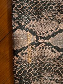 elegante borsa originale Gio Cellini in ecopelle effetto pitone nei toni beige, cipria e nero, con dettagli dorati.