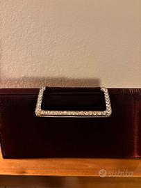 Preziosa borsa in shantung colore bordeau impreziosita da manico gioello con cristalli argento.