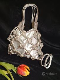 Borsa gioiello artigianale realizzata a mano. Struttura intrecciata impreziosita con luminosi cristalli perfetta per cerimonie, eventi importanti o serate eleganti. Unico pezzo.