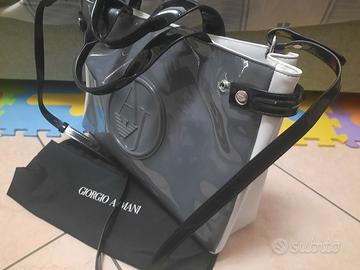 borsa Giorgio Armani in vernice bianco e grigio con manici e tracolla in nero pagata 130.00( nuovissima)