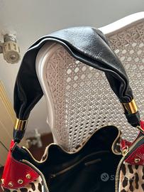 Borsa Giuseppe Zanotti in cavallino originale maculato inserti vernice rosso e tracolla nappa nero nuova con custodia