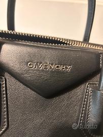 Borsa Givenchy Antigona limited edition con doppia scritta in blu scuro. Usata soltanto due volte, nessun difetto visibile. Comprensiva di sacca originale. Misure: 33,5x28x16,5