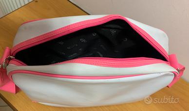 Borsa, tracolla "Gola" in ecopelle bianca e rosa, in buone condizioni