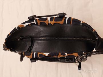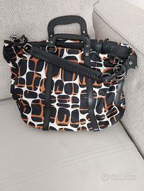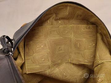 Borsa Francesco Biasia. Mai utilizzata. Bellissima in pelle nera e materiale sintetico in bella fantasia. Le parti in metallo sono bel colore brunito scuro. Molto capiente. Larga 42, alta 30 cm (manici non compresi) e profonda 16cm alla base che è sempre in pelle. All’interno bella fantasia in tessuto di cotone, finiture in pelle e taschine con e senza zip. Pratica anche in viaggio perche' si piega occupando poco ingombro. Nessun difetto. Vedi tutte le borse in vendita nel mio armadio