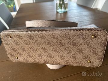 Borsa Guess grande originale due scomparti piu vari spazi con cerniere, h 28 cm , lunghezza alla base 30 cm , lughezza alla cerniera di 40cm circa, base larga 12 cm, toni marroni come nuova