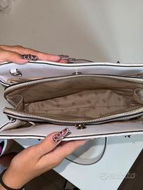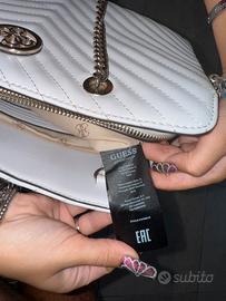 Vendo boraa grande Guess bianca con rifiniture in argento . La borsa si presenta in buone condizioni, vendo per inutilizzo