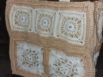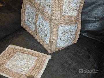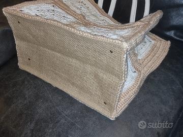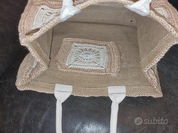 Borsa di juta lavorata all’uncinetto (materiale lana) con pochette NUOVA Impermeabile e resistente