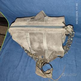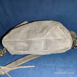 Borsa grigia in pelle scamosciata