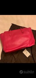 Borsa gucci nuova con cartellino e certificato; borsa antipolvere, colore fucsia con logo avanti color oro fodera interna beige con tasche interne ; tasca più grande con logo interno e numero di serie ; chiusura con magnete interno ; vera pelle martellata; misura 40x30 cm; modello swing tote large