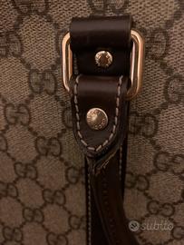 Splendida borsa da lavoro, da viaggio o da passeggio in pelle e tela con logo; munita di lunga tracolla, perfetta per contenere il notebook. Usata pochissimo, in ottime condizioni. Misure: 30x40x5,5 cm.