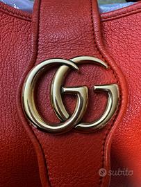 Borsa Gucci Aphrodite originale, modello a spalla molto ricercato, realizzata in pelle di alta qualità color arancione con iconico logo GG dorato frontale.