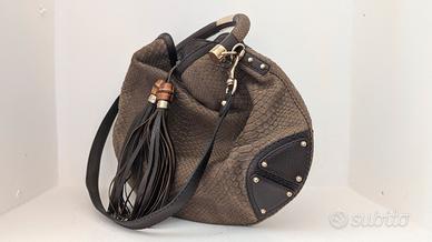 Bellissima borsa GUCCI Bamboo in vero pitone marrone opaco, misura LARGE (45x38x10cm). Manico rigido in pelle di vitello e acciaio dorato (con logo inciso).