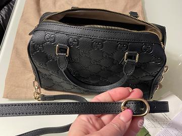 Bauletto Gucci nero modello GG supreme , cerniera con due supporti , tracolla removibile, regolabile, manici , tasca interna. Codice di serie. Dust originale, scontrino , cartoncino Gucci verde . Nuova mai utilizzata . Interno chiaro . Spedisco io con spedizione tracciabile o con assicurata. Per il pagamento con bonifico perché non ho PayPal né altri metodi subito .