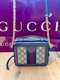 Borsa a tracolla Gucci/Gucci Monogram Ophidia Box con tracolla a catena. Dimensioni: 19×14 cm.