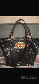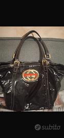 Borsa tote in pelle nera con dettagli dorati. - Logo iconico Gucci sul davanti - Manici in pelle con fibbie regolabili - Cuciture a contrasto - Finiture metalliche dorate Usata 3 volte