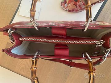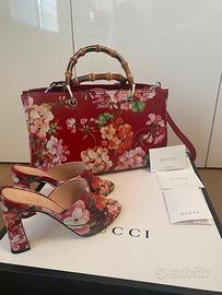 Borsa Gucci praticamente nuova in condizioni eccellenti perchè usata solo per un matrimonio, senza segni di usura. Pelle e finiture perfette, forma e colori intatti. Sandalo coordinato con la stessa stampa n. 37, indossato solo per il matrimonio in condizioni pari al nuovo