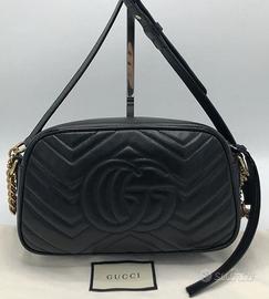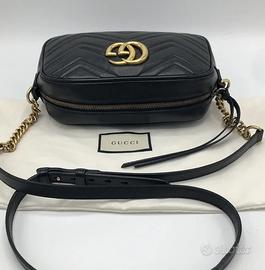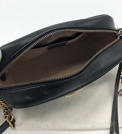 Fermagli e accessori: Hardware GG dorato e dettagli a catena, in ottimo stato di conservazione.